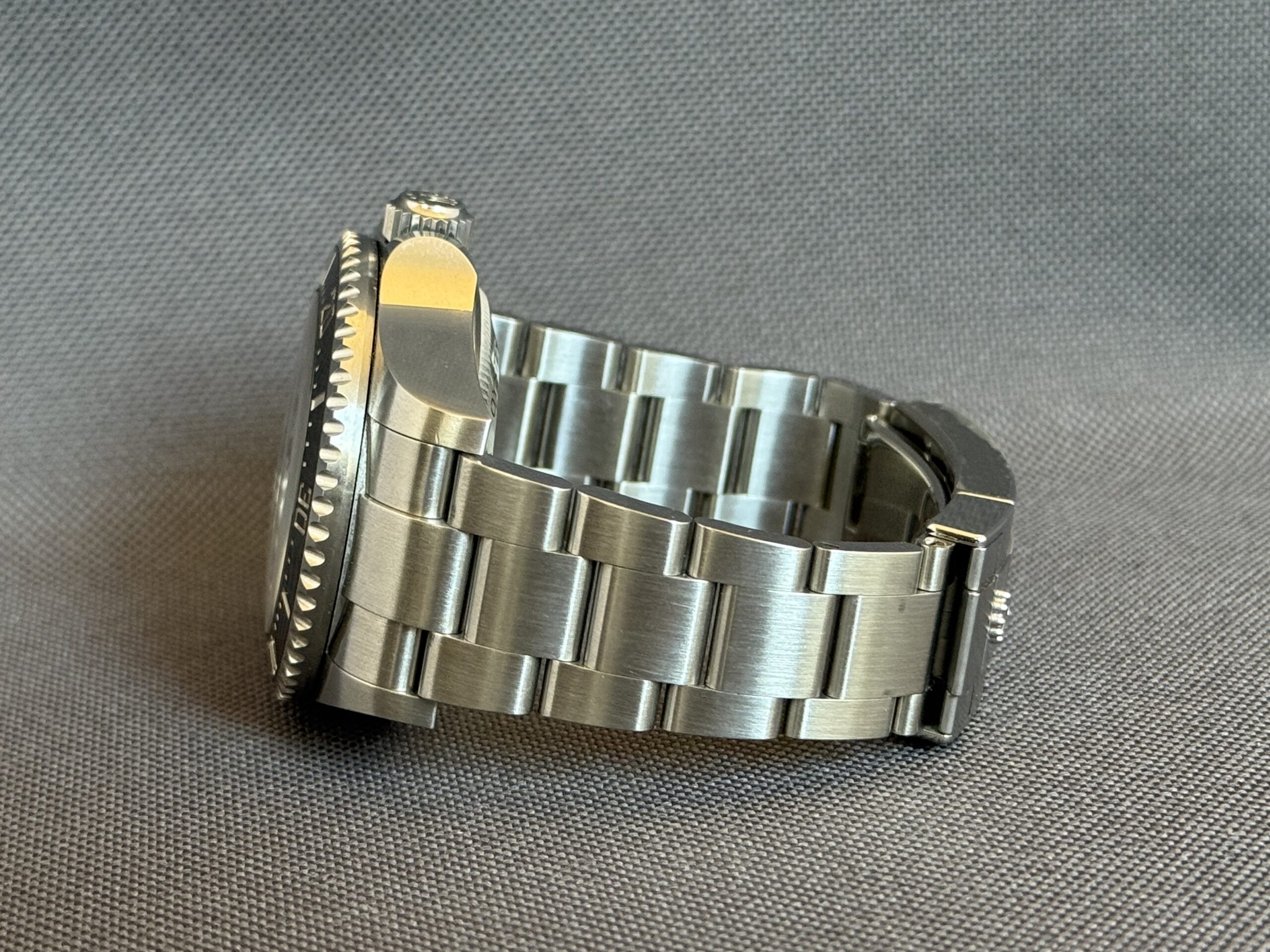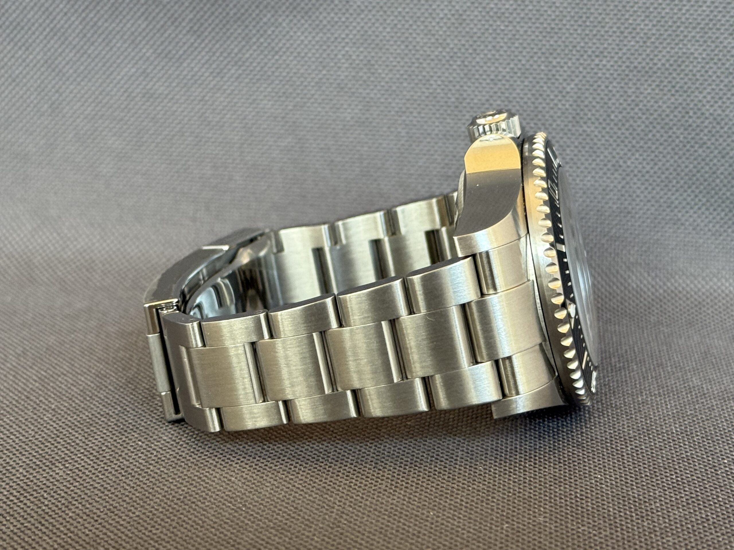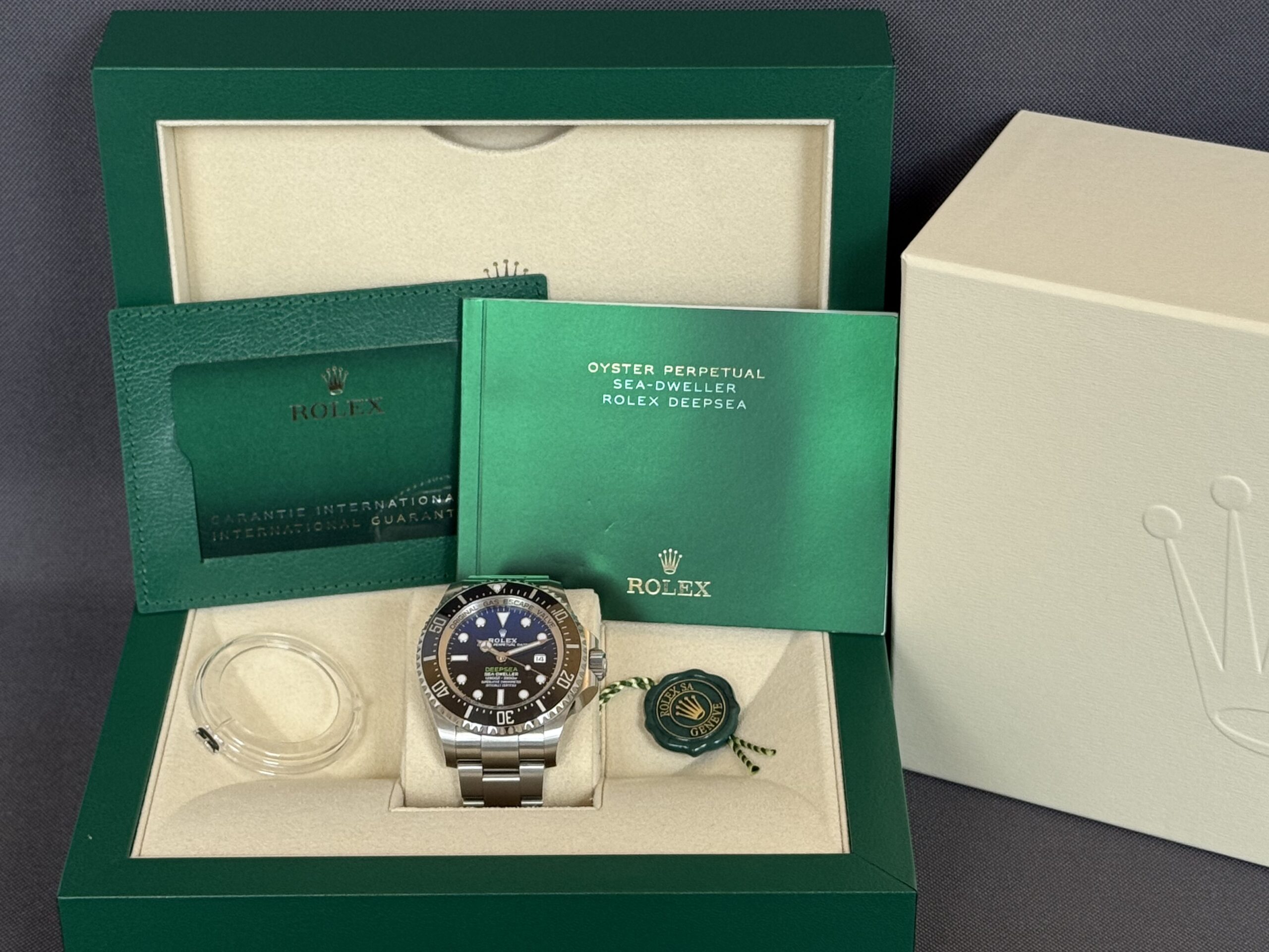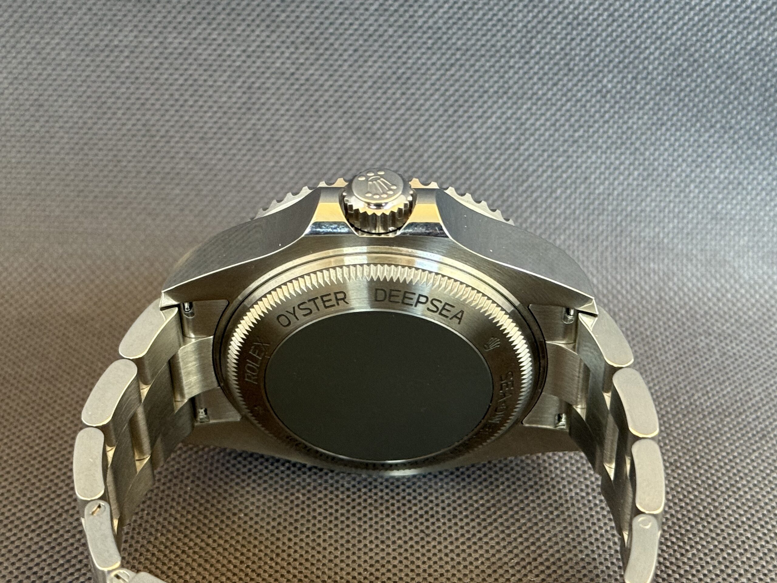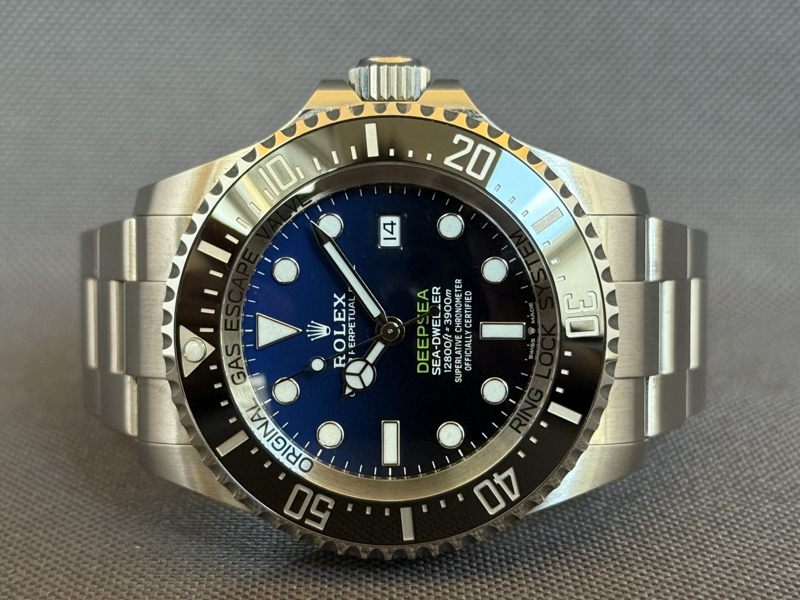 DEEPSEA BLUE. Skiven er fantastisk og skal opleves. Med en diameter på 44mm og en højde på knap 18mm er det et dykkerur, der kræver sin arm. Keramisk indlæg, oysterlænke med lås, der giver mulighed for hurtig tilpasning uden brug af værktøj. Automatisk værk 3235 yder 70 timers gangreserve og en præcision på +/- 2 sek.. Vandtæthed til 3.900m.