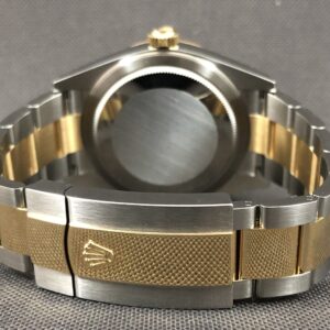 Det eftertragtede Sky-Dweller i guld/stål med riflet guld krans og champagne skive. Her får du det mest avancerede værk fra Rolex med dato, måned og GMT funktion. Vandtæthed til 100m.