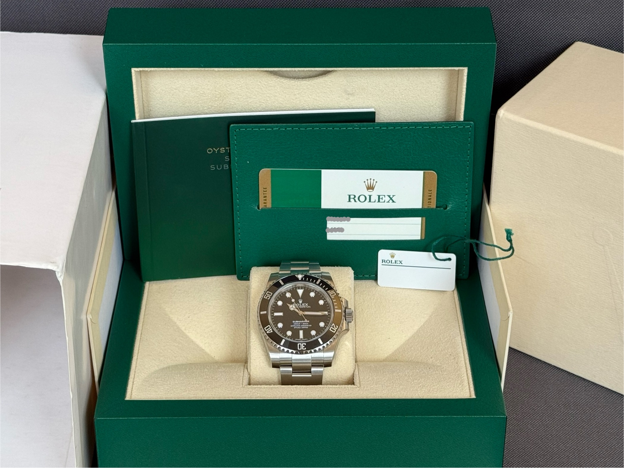 Klassisk Submariner ‘No Date’ med en diameter på 40mm. Uret står i sublim stand og kommer med delvis folie. Vandtæthed til 300m.