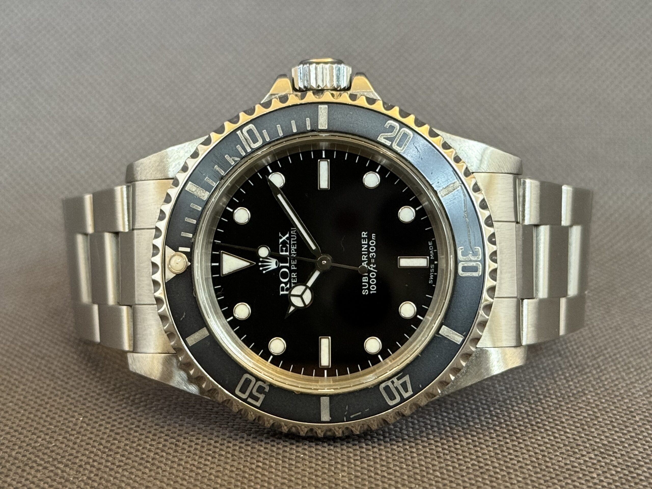 Flot eksemplar af den populære Rolex Submariner No Date fra 2000. Dette eksemplar har en super flot patineret lynette i grå/blå nuance. Gangreserve 48 timer og vandtæt til 300 meter.
