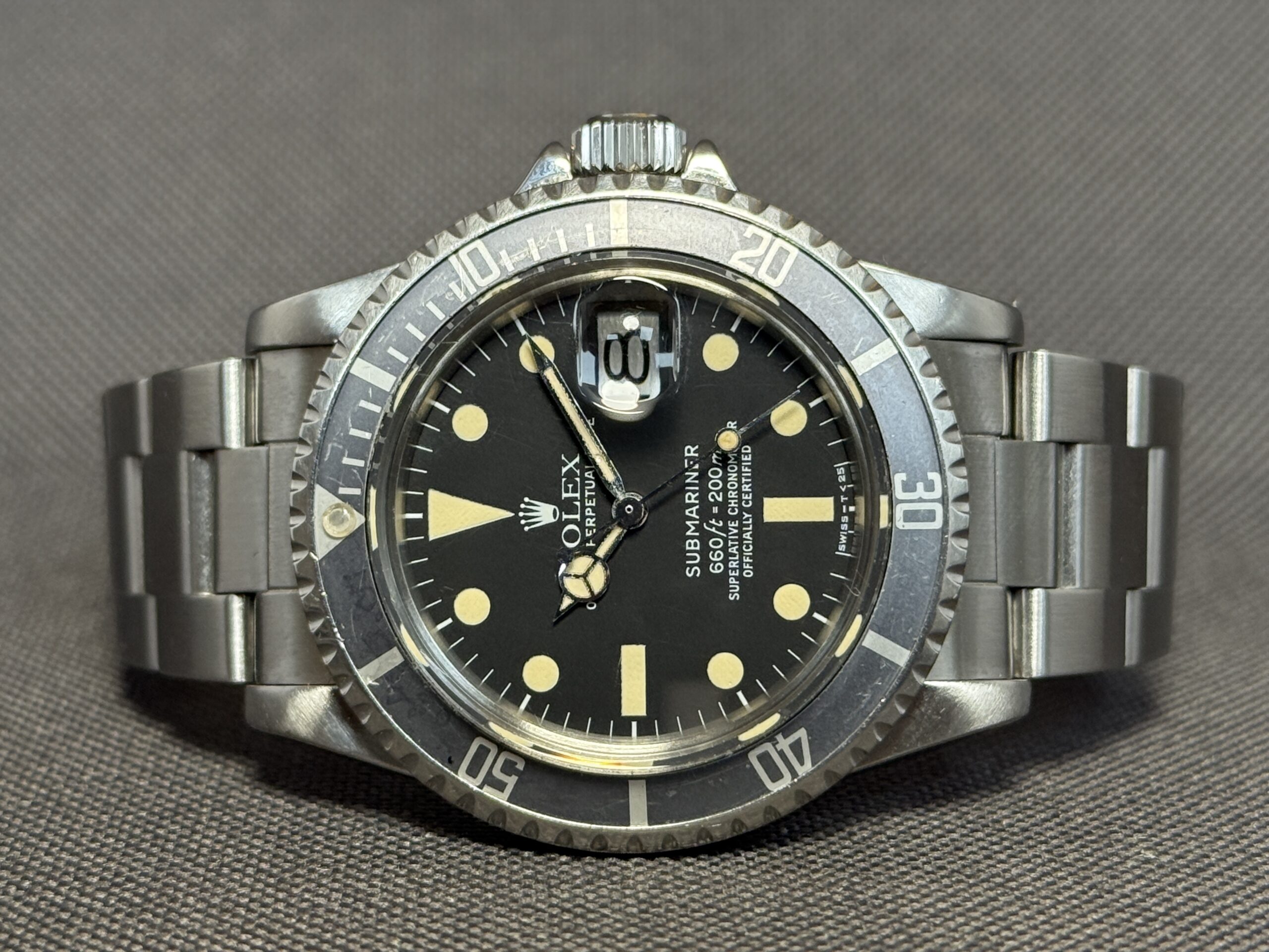 Et flot eksemplar af den yderst populære Submariner 1680 fra 1977, som er en stor kending blandt samlere og entusiaster inden for vintageure. Uret har en MK2-skive med en flot, matchende patina på både markører og visere. Lænken er en Oyster 93150 med 580-endestykker. Et superflot vintageur med smuk patina.