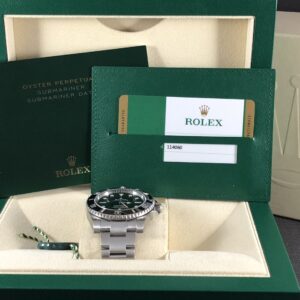 Submariner er et klassisk dykkerur med vandtæthed på 300m. Denne udgave uden dato er med maxi kasse, keramisk indlæg, oyster lænke, hvor låsen er med glidelock, hvilket giver mulighed for en hurtig justering uden værktøj. Værket er det robuste 3130 med gangreserve på 48 timer.