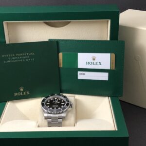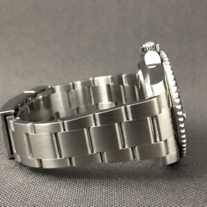 Et ubrugt eksemplar af den nu udgående version af Submariner med ‘maxi’ kasse. Låsen har glide lock, som gør det nemt at justere lænken. Det automatiske værk yder 48 timers gangreserve og har en præcision på +/- 2 sek. Vandtæthed til 300m.