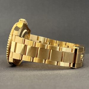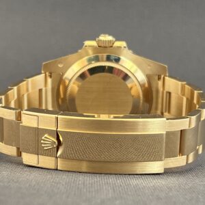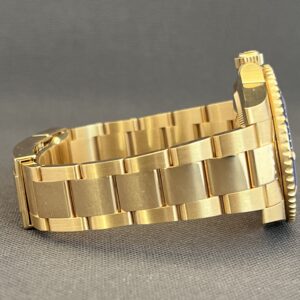Et vildt flot eksemplar af Submariner Date i 18k gul guld med blå skive. Det automatiske værk yder 48 timers gangreserve. Vandtæthed til 300m.