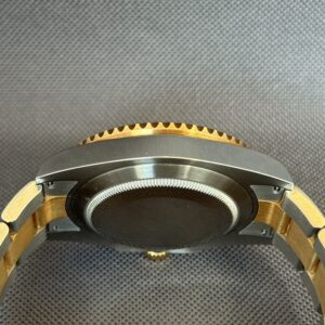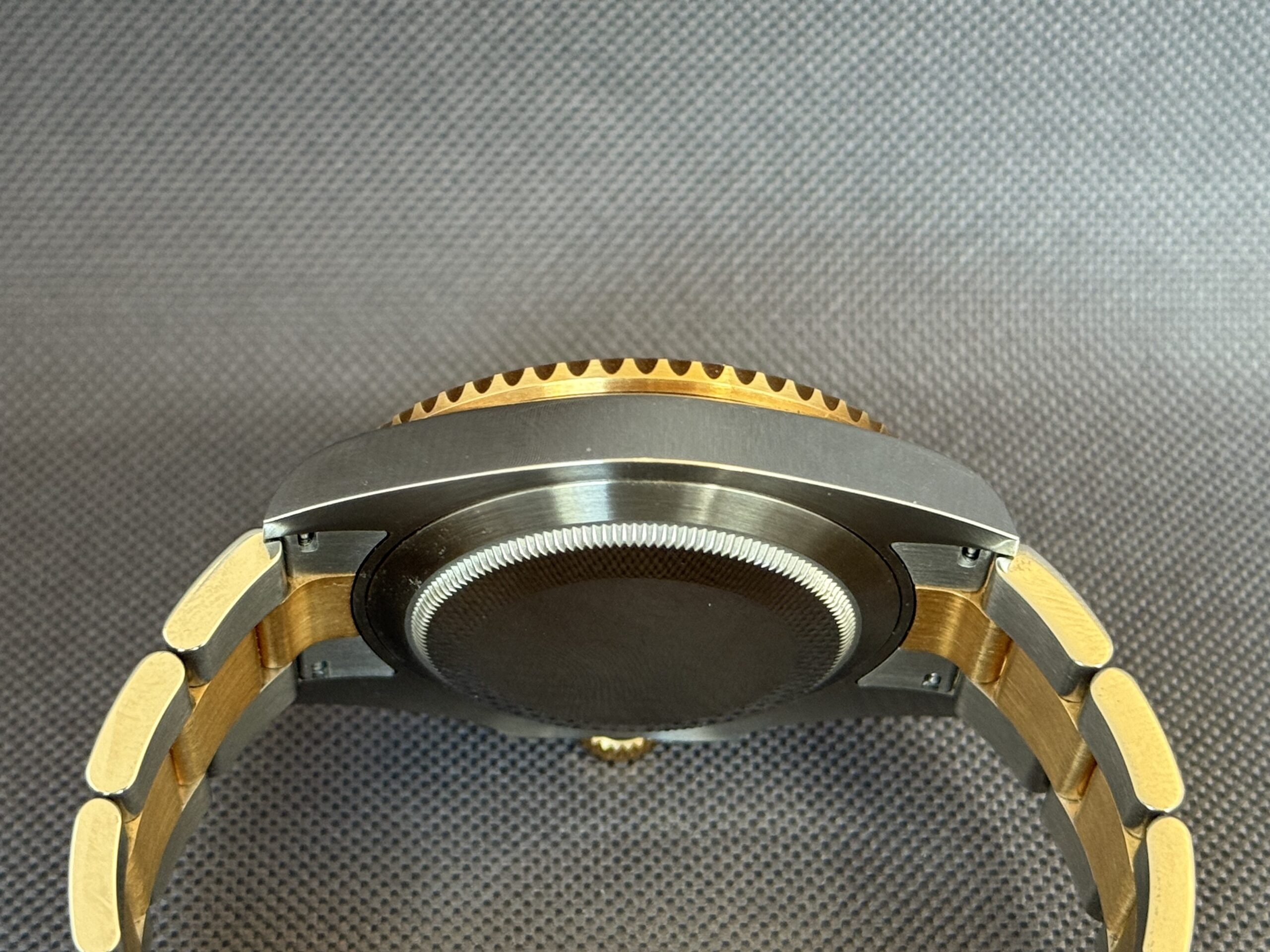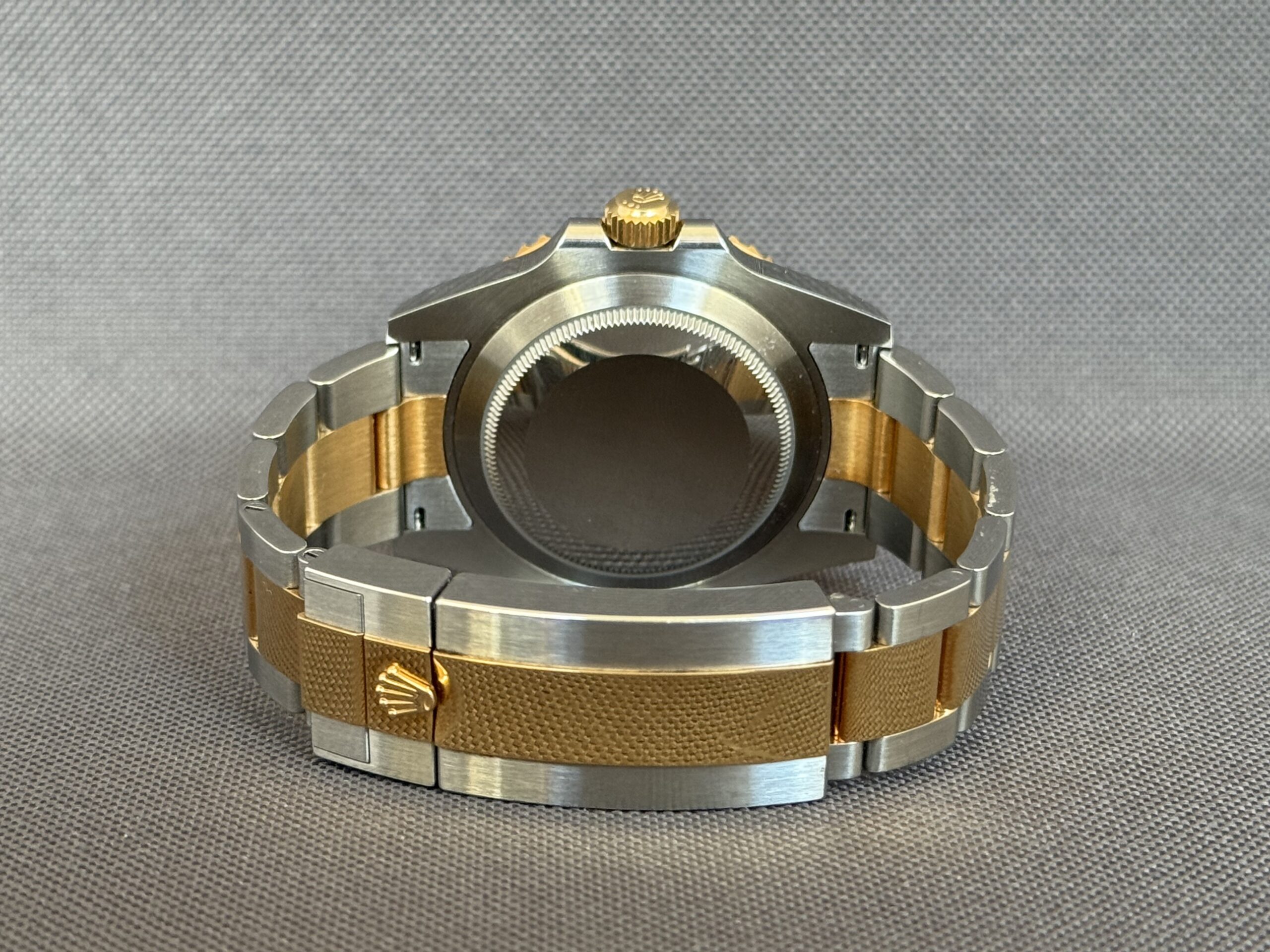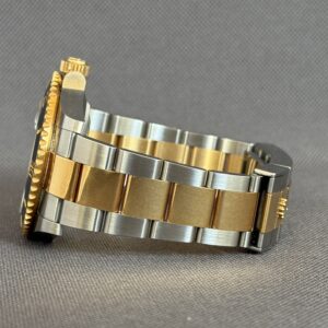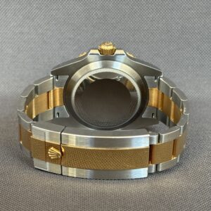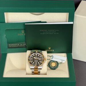 Nyeste udgave af Submariner Date i 18k guld og stål med sort skive. Nu i 41mm og smallere horn end den tidligere 116613LN. En anelse bredere lænke og et opdateret værk med længere gangreserve – 70 timer. Et fantastisk dykkerur i en eksklusiv udgave. Vandtæthed til 300m.