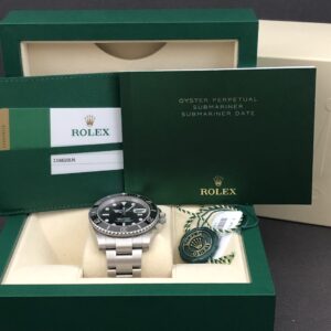 Submariner er et klassisk dykkerur med vandtæthed på 300m. Denne udgave med dato er med maxi kasse, keramisk indlæg, oyster lænke, hvor låsen er med glidelock, hvilket giver mulighed for en hurtig justering uden værktøj. Værket er det robuste 3135 med gangreserve på 48 timer.