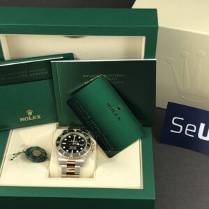Nyeste udgave af Submariner Date i 18k guld og stål. Nu i 41mm og smallere horn end den tidligere 116613LN. En anelse bredere lænke og et opdateret værk med længere gangreserve – 70 timer. Et fantastisk dykkerur i en eksklusiv udgave. Vandtæthed til 100m.