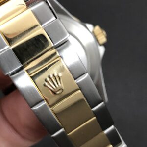 Klassikeren over dem alle i 18k guld/stål med blå sunburst skive, uden stifhuller, ROLEXROLEX i rehaut og oyster lænke med solide end links. Det robuste værk 3135 yder gangreserve på 48 timer. Vandtæthed til 300m.