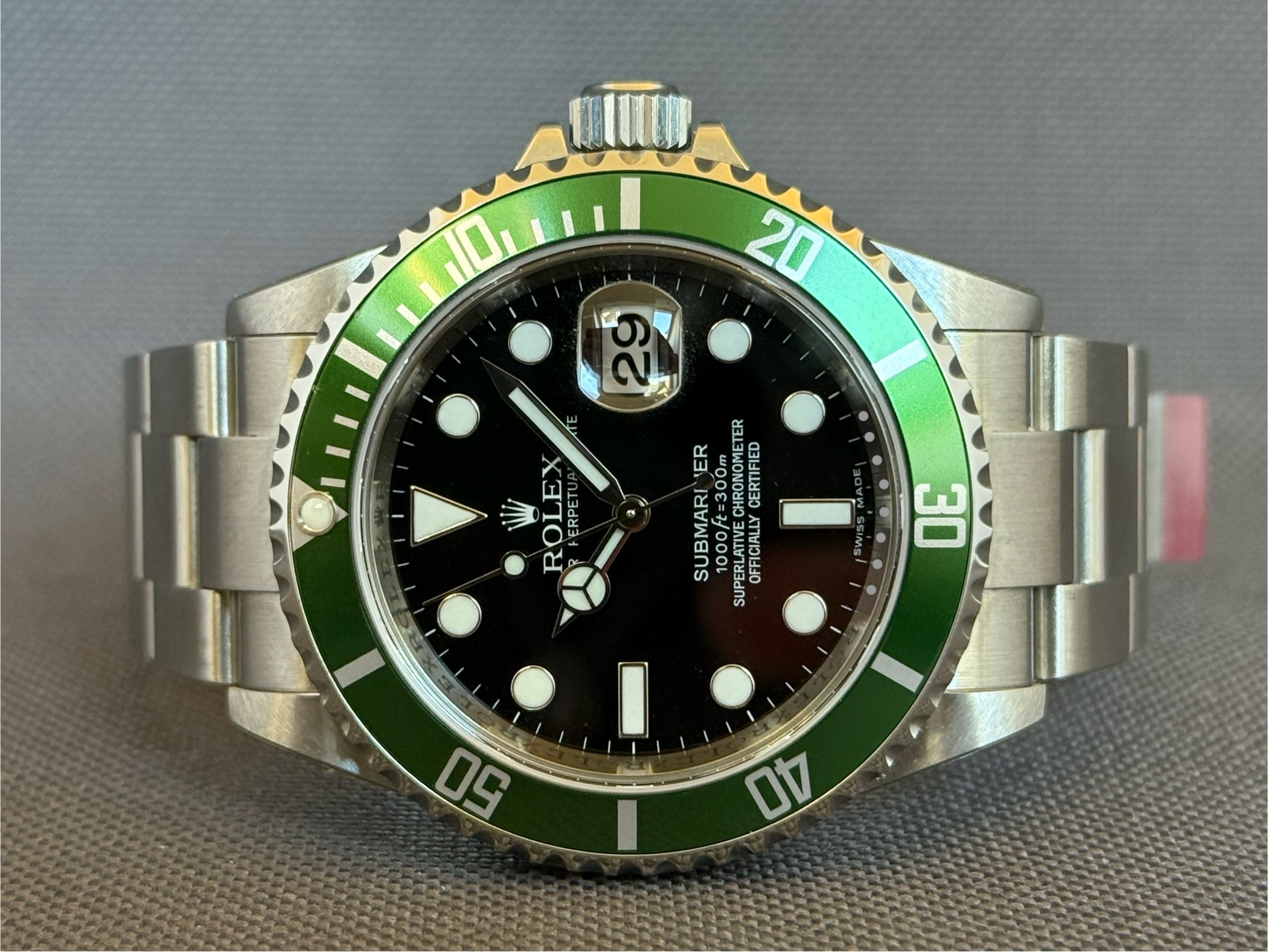 Det bliver ikke meget mere lækkert end et Kermit med alt folie. Et ur med stort investeringspotentiale og en lækkerbisken til den kræsne samler. Det automatiske værk yder 48 timers gangreserve. Vandtæthed til 300m.