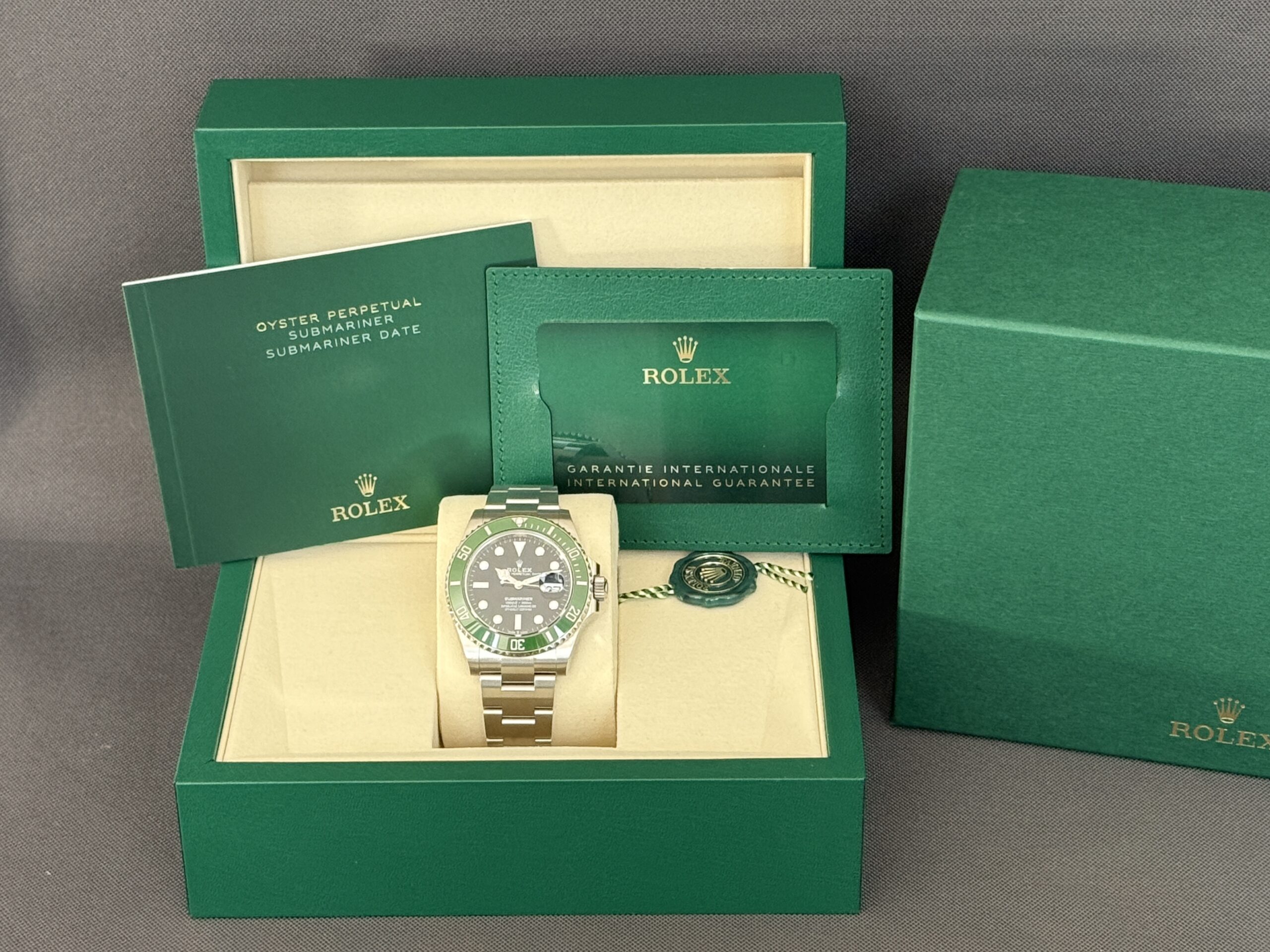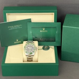 Nyeste version af Submariner date med grønt MK2 indlæg og en diameter på 41mm. Det nye automatiske værk 3235 yder gangreserve på 70 timer og har en præcision på +/- 2 sek. Vandtæthed til 300m.