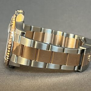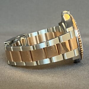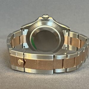 En eksklusiv udgave af Yacht-Master 40 i rosa guld og stål. Den matte sorte skive med kontrasten i rød skrift gør sig godt i solen. Oysterlænken er både robust og komfortabel. Låsen har easylink, hvilket giver mulighed for en hurtig tilpasning på 5mm uden værktøj. Værket er det nye forbedrede 3235 med hele 70 timers gangreserve og en præcision på +/- 2 sek. Roterbar krans i rosaguld, safirglas og vandtæthed til 100m.