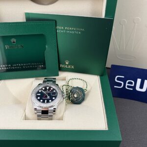 Nyeste version a Yacht-Master 40 med nyt urværk og den lækreste blå skive. Gangreserve på 70 timer og vandtæthed til 100m.