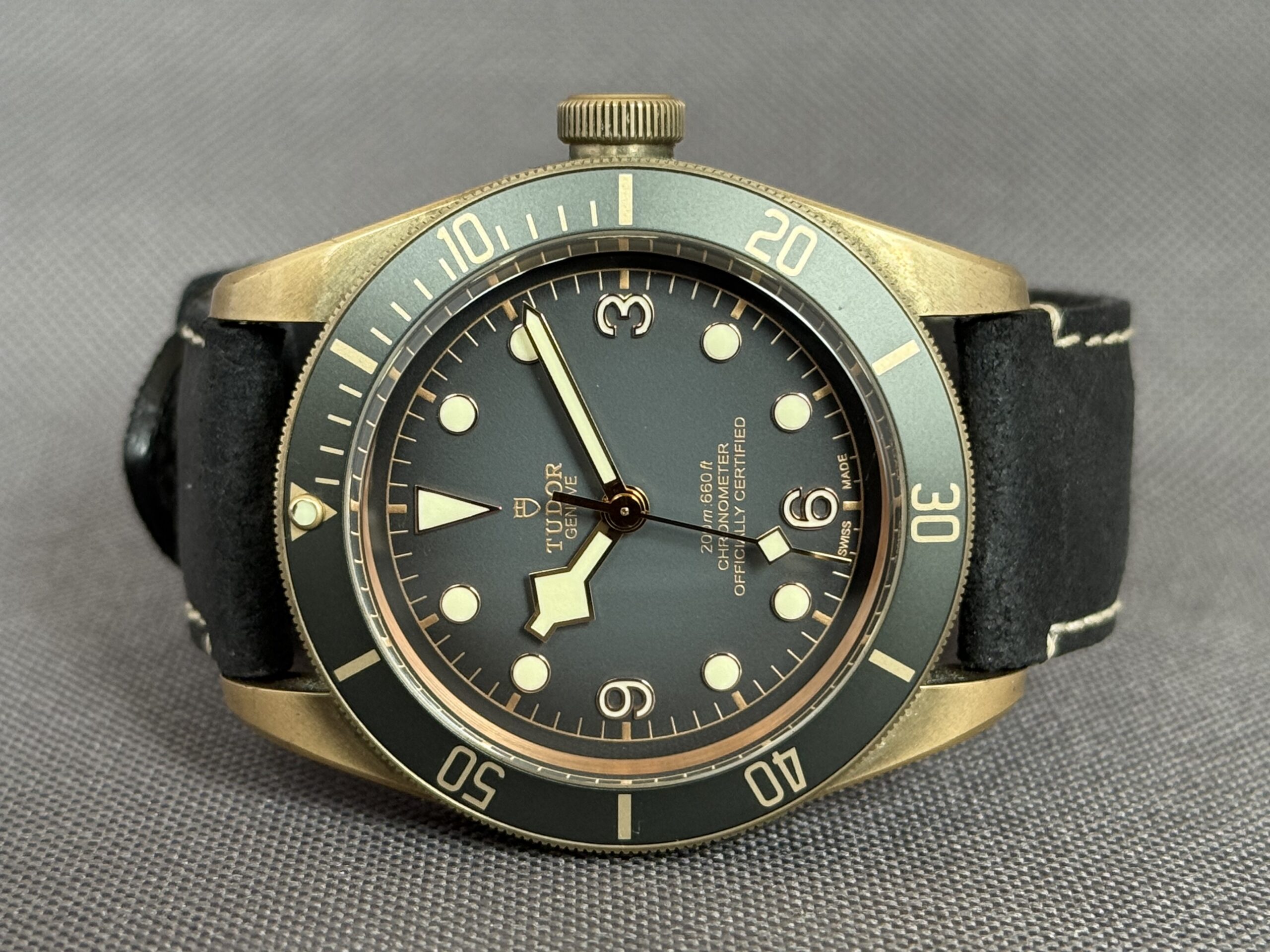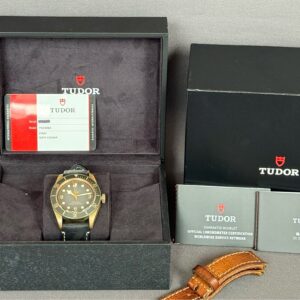 Tudor Black Bay 43 som er fremstillet i bronze som patinere over tid, hvilket giver hvert ur et unikt look. Skive og bezel er i farven slate-grey som giver et rigtig flot spil til urets bronze farve. Uret er drevet af Tudor’s kaliber MT5601 som yder 70 timers gangreserve samt vandtæthed til 200 meter.