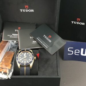 Bucherer Edition Black Bay Bronze med en fantastisk blå skive med Gilt skrift og Snowflake viser. Det automatiske inhouse værk yder 70 timers gangreserve. Et spændende dykkerur med vandtæthed til 200m i bronze, der patinerer helt unikt.