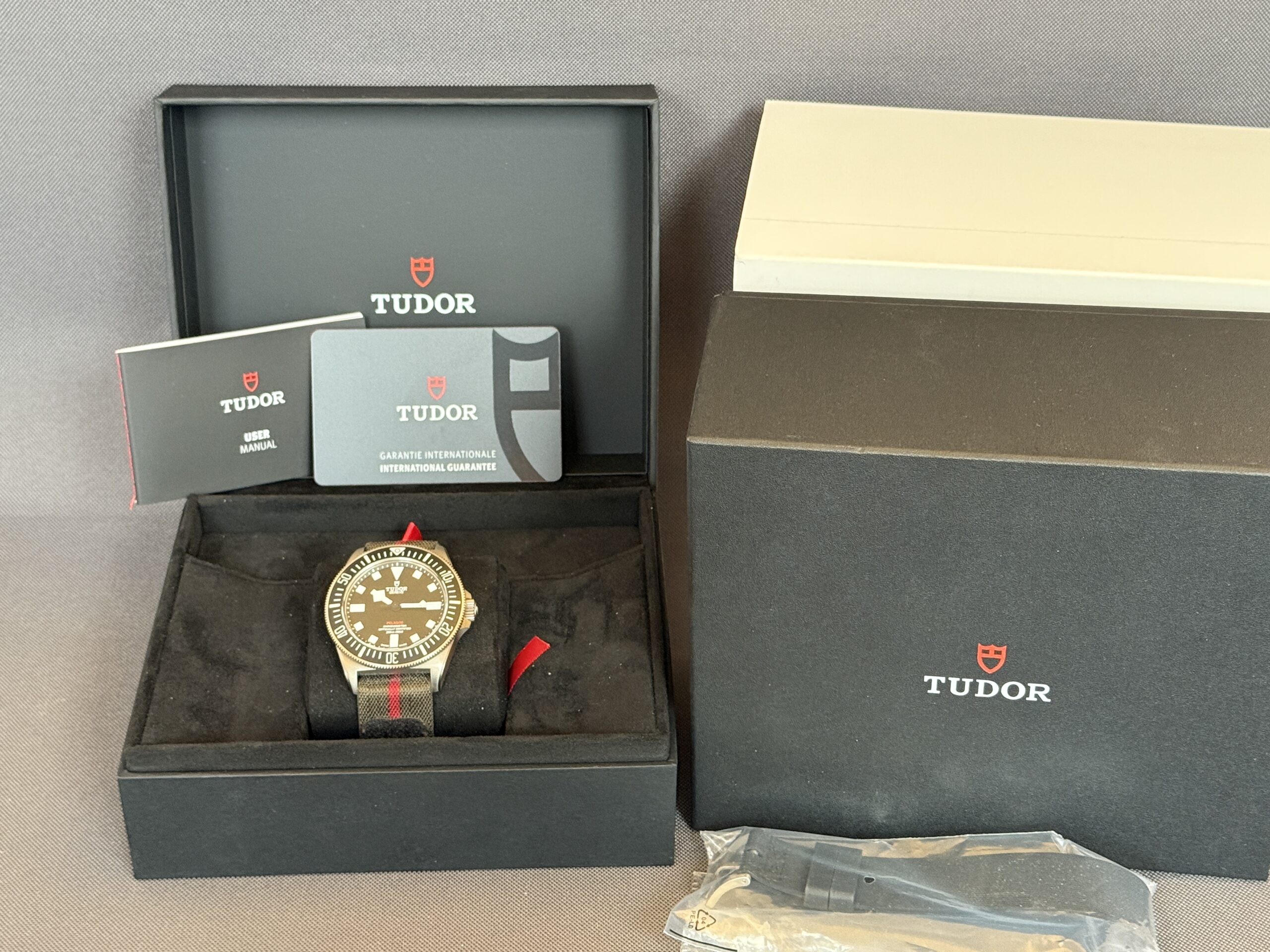 Tilbehør: Bokse, papirer, certifikat, ekstra org. Tudor gummirem