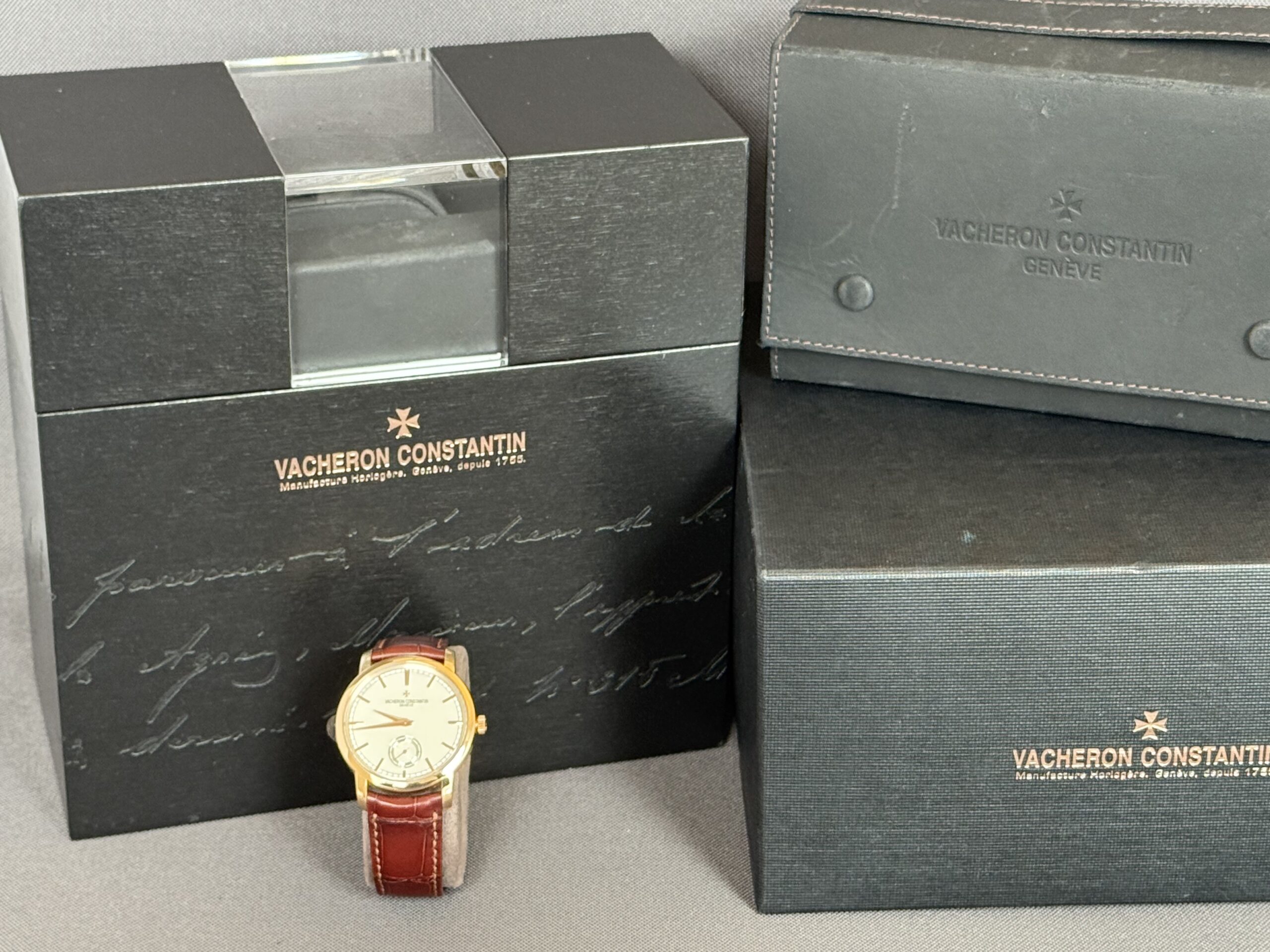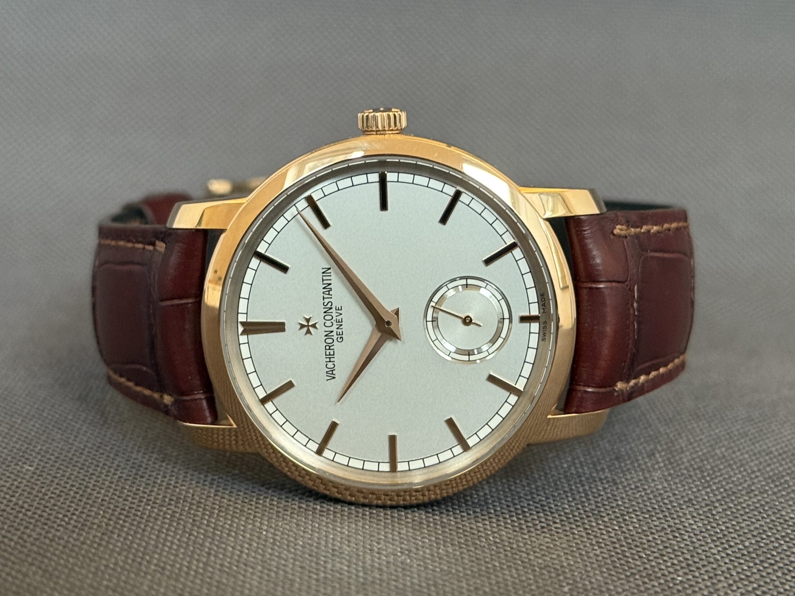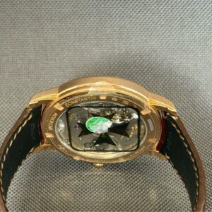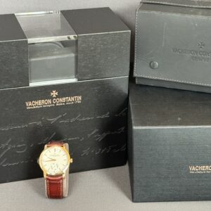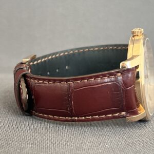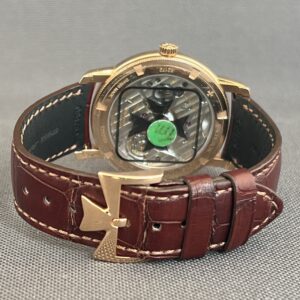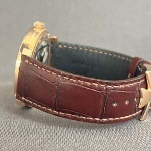 Et super lækkert dress watch fra Vacheron Constantin i rosa guld med kroko-rem og safirbagkasse med kig til det smukke manuelle værk. Urværket yder 62 timers gangreserve. Vandtæthed til 30m. Med en vejledende pris på 202.000kr er her muligheden for at gøre en god handel.